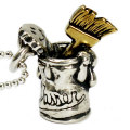 描かれたスマイルとに缶から飛び出た刷毛は左右にカタカタとポップに動くギミックが施された遊び心満載のペンダント。